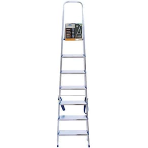 Dobrável e fácil de guardar, a Escada de Alumínio 7 Degraus é ideal para pequenos consertos e para alcançar lugares mais elevados no uso doméstico.