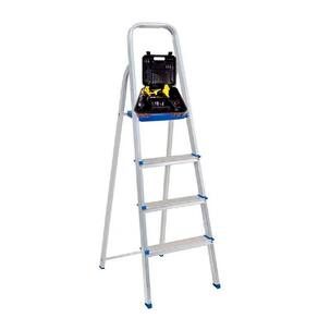 Dobrável e fácil de guardar, a Escada de Alumínio 4 Degraus da Mor é ideal para pequenos consertos e para alcançar lugares mais elevados no uso doméstico e também em apartamentos.
