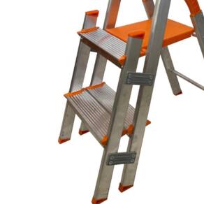 Produto: Escada de alumínio com 2 degraus duplos residencial - EMD002 Marca: Agata Descrição: A Escada de alumínio com 2 degraus duplos residencial EDM002 da Ágata possui estrutura em alumínio, corrimão de apoio duplo e acessórios em polipropileno. é prática e resistente. A EMD002 possui 2 degraus, sua capacidade de carga máxima é de 150 kg, possui trava de segurança em alumínio com articulação lateral, barra inferior traseira de reforço da estrutura, reforço do degrau traseiro, barra inferior traseira de reforço da estrutura. Sapatas duplas de borracha e degraus antiderrapantes. especificações: Capacidade de carga: até 150 kgDegraus: 2Altura aberta cm : 87Altura do patamar cm : 41Altura fechada cm : 98. Marca: Não Informado Ean: 7898083501452