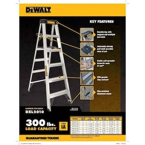 DeWalt DXL2010-03 Escada de 3 pés, 1,5 m, prata - Leve e seguro: esta escada resistente de 3 pés pesa apenas 4,8 kg. - Resistente e forte: com sua capacidade de 136 kg, design elegante e acabamento suave, você não encontrará uma escada de alumínio mais durável e confiável. - Máxima estabilidade: com pés de borracha antiderrapante e pés angulares de alumínio com piso de borracha grossa nas quatro pernas, esta escada de alumínio garante uma base segura. - Projetado para suas necessidades: incorporando um topo moldado com uma bandeja embutida e não condutora, esta escada de alumínio é feita sob medida para atender às suas necessidades específicas. - ESTRELAS DE SEGURANÇA: Esta escada de alumínio é projetada para atender ou exceder todos os padrões de segurança estabelecidos pela ANSI e OSHA, garantindo um desempenho confiável em qualquer situação.