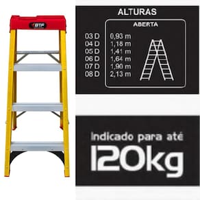 Cada vez mais conhecida no mercado nacional como “A escada do eletricista” a nossa “Tesoura de fibra prática” vem colhendo frutos por seu excelente projeto. Não condutora de eletricidade. Confortável e segura com seus degraus largos e antiderrapantes, sapatas de borracha e sistema de fechamento antibeliscão. Ela ainda tem um topo multiuso capaz de apoiar todas as ferramentas necessárias para os serviços elétricos gerais. Além disso, possui garantia de 12 meses, suporta até 120Kg e está disponível de 3 a 8 degraus.