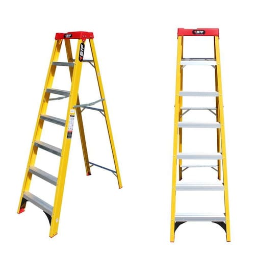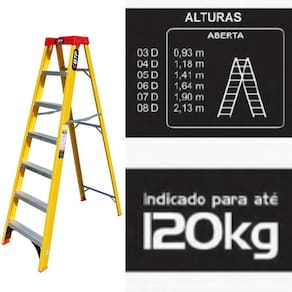 Não condutora de eletricidade Escada de fibra tesoura prática 6 degraus efp9901 Escada de fibra - tesoura prática - 6 degraus - btf Cada vez mais conhecida no mercado nacional como a escada do eletricista a nossa tesoura de fibra prática vem colhendo frutos por seu excelente projeto. Não condutora de eletricidade. Confortável e segura com seus degraus largos e antiderrapantes, sapatas de borracha e sistema de fechamento antibeliscão. ela ainda tem um topo multiuso capaz de apoiar todas as ferramentas necessárias para os serviços elétricos gerais. Além disso, possui garantia de 12 meses, suporta até 120kg e está disponível de 3 a 8 degraus. Esta é a tesoura de duplo acesso robusta. Indicada para uso comercial e industrial pesado. Ela é mais forte e estável que sua irmã tesoura prática, devido aos seus dois montantes largos e sapatas enormes. Suporta até 150kg e em seu maior tamanho 17 degraus seu alcance chega a 4,89m. Então já sabe: para trabalhos elétricos de pequeno, médio ou grande porte, use as escadas de fibra tesoura botafogo
