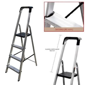 Escada Doméstica 4 Degraus em Alumínio Botafogo PRO ESC0024 Para quem procura uma escada doméstica com maior capacidade de carga e medidas maiores, apresentamos a Botafogo Pro. desenvolvida com padrão europeu, é comercializada tanto no mercado interno como no externo. Ela é sinônimo de qualidade. Proporciona maior alcance, conforto e segurança. Alcance, pois seu entre degraus é maior, tornando-a mais alta. Conforto, pois os seus degraus e patamar são maiores que os das escadas convencionais. Mais segurança, pois sua estrutura reforçada faz com que ela suporte até 150kg. Além de possuir um guarda corpo bem maior. Agora, o que é ainda mais bacana nela é o seu suporte de utilidades. Nele podemos apoiar diversas ferramentas, lâmpada e tem até um gancho para pendurar balde. É um produto certificado pelo INMETRO, 100% nacional e sustentável. Já que em seu fim de ciclo pode ser totalmente reciclável. Está disponível de 2 à 7 degraus. E ainda possui incríveis 5 anos de contra defeitos de fabricação. Então não esqueça. Escada doméstica, mas com pegada Profissional, é a Botafogo PRO Marca: Não Informado
