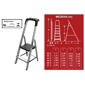 Escada Doméstica 5 Degraus em Alumínio Botafogo PRO ESC0025 Para quem procura uma escada doméstica com maior capacidade de carga e medidas maiores, apresentamos a Botafogo Pro. desenvolvida com padrão europeu, é comercializada tanto no mercado interno como no externo. Ela é sinônimo de qualidade. Proporciona maior alcance, conforto e segurança. Alcance, pois seu entre degraus é maior, tornando-a mais alta. Conforto, pois os seus degraus e patamar são maiores que os das escadas convencionais. Mais segurança, pois sua estrutura reforçada faz com que ela suporte até 150kg. Além de possuir um guarda corpo bem maior. Agora, o que é ainda mais bacana nela é o seu suporte de utilidades. Nele podemos apoiar diversas ferramentas, lâmpada e tem até um gancho para pendurar balde. É um produto certificado pelo INMETRO, 100% nacional e sustentável. Já que em seu fim de ciclo pode ser totalmente reciclável. Está disponível de 2 à 7 degraus. E ainda possui incríveis 5 anos de contra defeitos de fabricação. Então não esqueça. Escada doméstica, mas com pegada Profissional, é a Botafogo PRO Marca: Não Informado