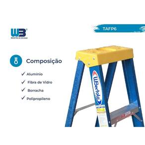 -Garantia: 12 meses Altura Máxima da Escada: 180 Ambiente Principal: Área de Serviço Antiferrugem: Sim Certificado: Não Cor da Estrutura: Azul Cor dos Degraus: Prata Cor dos Pés: Preto Cor Predominante: Azul Degraus Antiderrapantes: Sim Degraus Divididos Em: Possui Apenas 01 Sequência de Degraus Dobrável: Não Função: Profissional Itens Inclusos: Nenhum Largura da Escada: 50 Largura do Degrau: 43 Material da Estrutura: Fibra de Vidro Material dos Pés: Borracha Número de Posições: 01 Origem do Produto: Nacional Pés Antiderrapantes: Sim Peso: 6 Possui Limitador de Abertura: Sim Profundidade do Degrau: 6.1 Quantidade Total de Degraus: 06 Recomendações de Uso, Manutenção e Limpeza: Orientações Gerais para Uso, Transporte e Conservação das Escadas Orientação para Uso: 1 – Utilizar as escadas sobre piso firme e nivelo, seja cuidadoso em pisos escorregadios; 2 – Não utilizar nenhum objeto para aumentar a altura da escada; 3 – Nunca use a escada como andaime; 4 – Use cinto de segurança para subir ou descer da escada enquanto tiver trabalhando; 5 – Não exceder 60 cm do topo da escada; 6 – Utilize a escada no ângulo apropriado, 75º; 7 – Verifique se as catracas estão devidamente travadas antes de subir; 8 – Observar o limite de abertura – Faça uma inspeção visual antes do uso; 9 – Para escada extensiva o deslizamento deve ser leve e suave tanto na subida, quanto na descida; 10 – Não é permito reparo nos montantes da escada; 11 – Não exceder a carga máxima total especificada para a escada; 12 – Escadas tesouras: Não pisar na plataforma sem alça de apoio e certificar de que a escada esteja totalmente aberta antes do uso; 13 – Os EPI’s a serem utilizados, deverão seguir as Normas de Segurança da empresa; 14 – Não desça ou suba as escadas de costas para ela; ORIENTAÇÃO PARA TRANSPORTE: 1 – Transporte sua escada sobre apoio de borracha ou plástico; 2 – Amarre firmemente a escada para evitar atritos e impactos; 3 – Escadas com até 4 metros poderão ser transportadas por uma pessoa, devendo ser mantida na parte dianteira. Escadas com mais de 4 metros deverão ser transportadas por duas pessoas; 4 – Tome cuidado com choques em linhas energizadas ao transportar escadas. ORIENTAÇÃO PARA MANUTENÇÃO: 1 – Reparos e manutenção nos montantes só poderão ocorrer sob orientação e após um parecer do fabricante; 2 - A escada deverá ser reparada se apresentarem quaisquer defeitos indicados a seguir: Cinta de apoio danificada ou solta; Sistema de travamento, roldana, guias, sapatas com trincas ou danificadas, mola solta ou lingüeta quebrada; Tirantes e parafusos folgados; Suporta Até (kg): 120 Tipo de Certificado: ISO 9001 Ean: 7898043627116