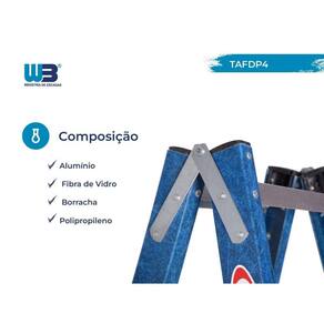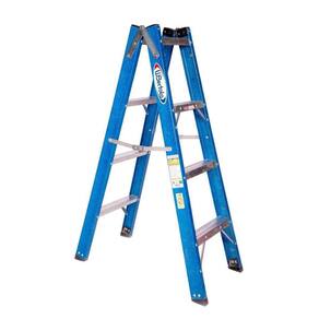 As escadas tesoura duplo acesso Premium são em formato A, possuem limitadores antibeliscão, os degraus são em alumínio e antiderrapante.