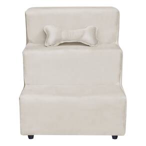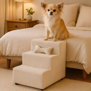 Escada Escadinha Para Pet 3 Degraus Com Osso Cor Bege Veludo Liberty Móveis