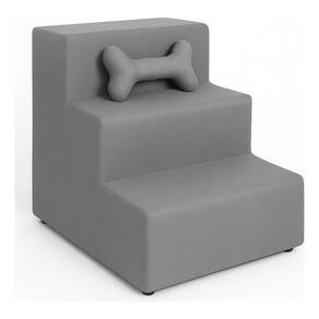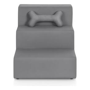 Escada Escadinha para Pet 3 Degraus com Osso cor Cinza Veludo Liberty Móveis