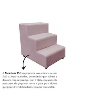 Escada Escadinha Pet Cachorro 3 Degraus Rampa Suede Dog Cor:rosê