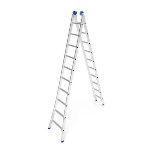 A escada conta com rodas que facilitam o uso, sistema de articulação com encaixe de travamento que proporciona maior segurança e abertura cônica dos pés e sapatas antiderrapantes, garantindo mais estabilidade.