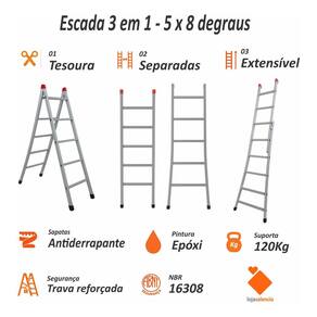 01 Escada 3 em 1 com 5x8 degraus (modelo conforme variação)