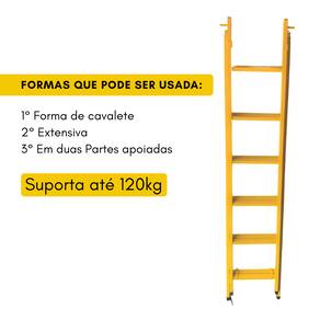 * SISTEMA 3 EM 1: Use como escada Extensiva (reta, até 3m), em formato Cavalete (tipo A, 1,67m) ou separada em Duas Partes independentes de 1,80m.
