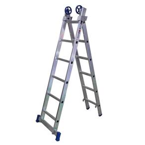 Informações Adicionais: Escada ágil de alumínio, o que lhe confere extrema leveza e resistência. É indicada para serviços em geral, podendo ser utilizada de duas formas: estendida, e no formato pintor. Possui barras estabilizadoras. Sua carga máxima de trabalho é de 150 Kg.