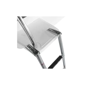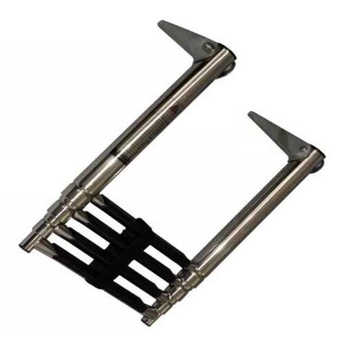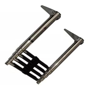 Escada 4 Degraus Compacta e de Fácil instalação, a escada com 4 degraus para embarcações é feita 100% em INOX 316 polido de alto brilho com degraus revestidos em borracha antiderrapante para dar mais segurança ao subir ou descer da embarcação A Haste de fixação ao casco possui articulação de até 270, que permite guardar a escada enquanto navega. Seus degraus são retráteis e possui cinta de segurança para prendê-los, deixando a escada super compacta para ser guardada. Características: Dimensões Máximas Aberta : 115cm x 25,4cm A x L Dimensões Mínimas Fechada : 38 x 25,4 A x L Diâmetro do tubo no degrau mais alto: 3cm Itens que Acompanham o Produto: 01 Escada em INOX com 4 Degraus; Ean: 7908777356845