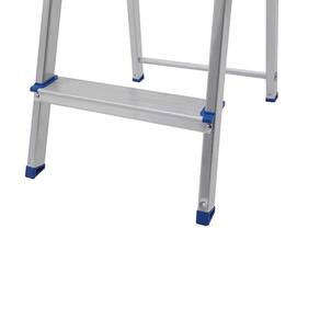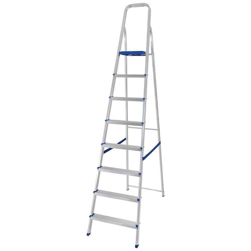 Além disso, o alumínio é um material leve e durável mesmo em áreas litorâneas. As peças plásticas da escada são feitas de polipropileno de alta resistência, seus pés antiderrapantes e travamento automático na plataforma superior garantem maior estabilidade, suportando até 120kg.