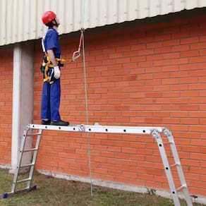 A Escada Multifuncional com Plataforma é prática e muito eficiente. Com ponteiras emborrachadas nos pés, degrau com ranhuras e sistema de trava de segurança ela pode ser montada em até 9 posições diferentes, facilitando na hora do uso. Seu grande diferencial são suas chapas de aço que se encaixam servindo como plataforma, possibilitando utilizar a escada como andaime. Possui pés e degraus em alumínio, dobradiças em aço galvanizado com exclusiva trava de segurança, oferecendo estabilidade e segurança total durante seu uso. Com 4 partes de 4 degraus, alcança a altura de 4,61m quando totalmente estendida. Prática, em menos de um minuto você pode trocar a posição da escada de acordo com sua necessidade. Por ser totalmente dobrável, ao fechá-la seu volume diminui ocupando pouquíssimo espaço, facilitando seu transporte e armazenamento em qualquer lugar. Com 3 anos de garantia, é a versatilidade que você precisava para alcançar as superfícies mais altas e lugares de difícil acesso com muita rapidez e agilidade.