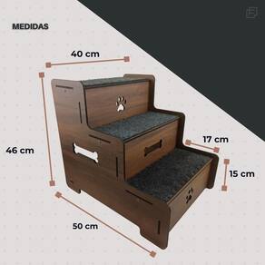 Escada para Cachorro 3 degraus escadinha para cachorro Pet Escada desenvolvida e pensada para seu PET ter mais conforto e acessibilidade em locais de dificil acesso. Produzida com material de alta qualidade e resistencia, suportando tambem animais de grande porte. Diferenciais do Nosso Produto Degraus em mdf 6mm, suportando até 8kg Escada montada com encaixes e parafusos Tapete antiderrapante Evita lesões e acidentes com seus pets ESPECIFICAÇÕES DO PRODUTO - Altura: 46 cm - Largura: 40 cm - Profundidade: 50 cm - Altura dos Degraus: 15 cm - Largura dos Degraus: 17 cm - Número de Degraus: 03 - Estrutura Degraus: MDF 6 mm - Revestimento: Melamina - Acompanha kit para de instalação. INSTALAÇÃO A instalação é bem simples, basta acompanhar o passo a passo do manual LIMPEZA / MANUTENÇÃO Para limpeza, utilize apenas um pano umedecido com água sem produtos químicos para garantir a durabilidade. TOTAL: Todos nossos produtos contam com contra defeitos de fabricação. Marca: Não Informado