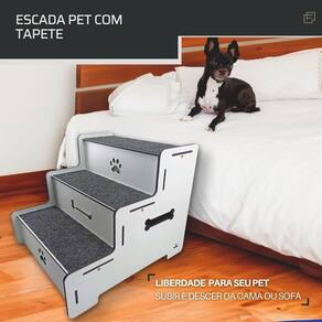 Escada para cachorro rampa pet para subir na cama e sofá Estamos entre os melhores vendedores desta loja. Tenha tranquilidade de comprar com quem está disposto a te oferecer o melhor atendimento. Temos a missão de garantir a sua satisfação total, tanto nos produtos quanto no atendimento. Assim estabelecendo uma relação de confiança Qualquer dúvida nos mande uma pergunta ou clique em: ver mais anúncios do vendedor Escada 3 degraus para pet Dê ao seu pet a liberdade ao se pet de subir e descer da cama ou sofá com a segurança que ele merece. Sabemos que o impacto ao descer de lugares altos podem causar vários problemas de saúde a ele como problemas nas articulações e ossos. pensando nisso desenvolvemos escadas seguras para você evitar esse tipo de problema em seu pet. os degraus são revestidos com carpete e são feitos em 6 mm. Na parte de baixo acompanha fita de aderência para que a escada fique estável quando seu pet sobe ou desce. Observação: o produto é enviado desmontado, acompanha manual de instruções detalhado e parafusos para a montagem. Diferenciais do produto Escada reforçada e montada com parafusos; Tapete antiderrapante; 100% mdf mais qualidade e segurança; Mesmo material na fabricação de móveis sob medida Dupla camada de melamina com resistência e acabamento premium; Parafusos e fixação resistentes com capacidade de até 5kg por prateleira; Somos fabricantes dos nossos produtos O envio do seu pedido é nossa prioridade e além de fazermos seu produto com o máximo de carinho e qualidade, despachamos o mais rápido possível. Especificações do produto - altura: 46 cm - largura: 40 cm - profundidade: 50 cm - altura dos degraus: 14 cm - largura dos degraus: 17 cm - número de degraus: 03 - estrutura degraus: mdf 6 mm - revestimento: melamina - acompanha kit para de instalação. Instalação A instalação é bem simples, basta acompanhar o passo a passo do manual Limpeza / manutenção Para limpeza, utilize apenas um pano umedecido com água sem produtos químicos para garantir a durabilidade. total: Todos nossos produtos contam com contra defeitos de fabricação. Atenção: As cores do produto podem variar de acordo com o monitor, a iluminação do ambiente ou sua percepção visual. As imagens ambientadas são meramente ilustrativas e podem apresentar itens que não compõe o produto. Dúvidas Se tiver alguma dúvida ou não tiver encontrado o que você procura, fique à vontade para utilizar o campo de perguntas. Responderemos o mais rápido possível. Marca: Não Informado Ean: 7906587826640