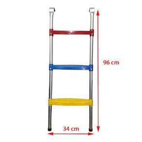 Esse modelo de escadinha para cama elastica com 3 degraus é ideal para o pula pula de 3,05, 3,66 e 4,27 m.