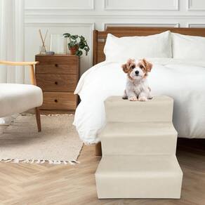 Dê mais autonomia, conforto e segurança para seu pet subir na cama ou no sofá com essa linda Escada Pet de 3 Degraus revestida em veludo! 💖