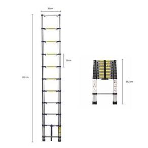 Escada RETA 5 metros 13 Degraus Escada telescópica retangular em V com 5 metros e 16 degraus- A escada telescópica multifuncional de alumínio 5 metros da siga tools - nakasaki é perfeita para o uso doméstico quanto para o , sendo extremamente prática e fácil de manusear. Sua estrutura é de alumínio, possui um encaixe para as mãos no penúltimo degrau para que possa ser transportada com muito mais comodidade. - Conta com excelente qualidade e resistência, pois suporta até 150kg. Compacta e fácil de armazenar, possui 93cm de altura quando está fechada. É ideal para limpeza de janelas, pintura de interiores e exteriores, além de auxiliar em decorações quando necessário. Oferece muito mais segurança, pois conta com mecanismos de travamento em cada degrau. Características: - Possibilidade de usar a escada no formato tipo ''a'' estilo pintor / tesoura . - Fácil e prática de montar e usar. - Material resistente de maior durabilidade e leveza. - Sapata de borracha. - Sistema de segurança com travas em cada degrau. - 100% alumínio. Marca: Não Informado