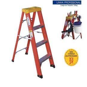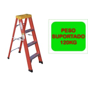 Escada Tesoura 1.2m Alumínio/Fibra 4 degraus WBertolo TAF 4 Escadas profissionais de alta performance Por não serem condutoras de energia, são ideais para trabalhos que envolvam eletricidade. De fácil manuseio, suportam carga máxima em todos os modelos de 120 kg/136 kg, com exceção da banqueta - 150 kg, e contribuem também para a segurança em atividades de telecomunicação, manutenção, pintura, trabalho em altura, instalações, dentre outras. Todas são de uso em baixa e média tensão com alto padrão de qualidade da marca que você já conhece. - Especificações Técnicas: Modelo: Profissional TAF 4 Peso: 4,50 Kg Material: Alumínio E Fibra Altura: 1,20 Metros Número De Degraus: 3 Degraus + 1 Patamar Carga Máxima De Trabalho: 120Kg As escadas Tesoura TAF são escadas em formato A, compostas por duas partes. A parte frontal possui os degraus de alumínio planos com frisos antiderrapantes. A parte traseira que serve apenas de apoio, onde não há acesso para a utilização. Essas escadas são leves, com baixa absorção de água e não condutoras de eletricidade. Ideais para uso industrial, comercial e doméstico. Fabricação São fabricadas em Perfil U em fibra de vidro por processo de pultrusão e degraus planos em alumínio com frisos antiderrapantes, proporcionando maior conforto e segurança em sua utilização. São fabricadas conforme a norma ABNT/NBR 16308. Padronização: Sapatas de borracha patamar para apoio de ferramentas limitador de abertura antibeliscão etiquetas para sua identificação. Composição Alumínio Fibra de Vidro Borracha Polipropileno Informação Carga máxima de trabalho de 120 kg Leves e duráveis Resistentes Não condutora de eletricidade Essas escadas permitem 100% de manutenção O patamar da escada não é considerado um degrau útil.