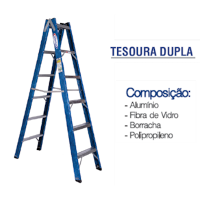 As escadas Tesouras Duplas (TAFD) são escadas compostas por duas partes e podem ser utilizadas de ambos os lados. Estas escadas são leves, com baixa absorção de água e não são condutoras de eletricidade. Fabricadas conforme a norma ABNT/NBR 16308.