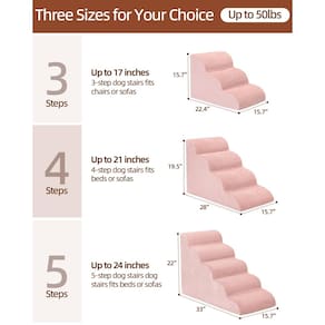 Escada para cães - Estável e resistente: ajude seu animal de estimação a alcançar áreas difíceis de alcançar com nossas escadas convenientes. A rampa para cães é projetada para cães pequenos e é feita de espuma 35D de alta qualidade, adequada para animais de estimação de até 22,7 kg, oferecendo equilíbrio perfeito de suporte e suavidade. Além disso, a alça embutida torna essas escadas de rampa altamente portáteis e fáceis de transportar. - Vários tamanhos e várias cenas: a escada de cachorro de 3 degraus serve para cadeira/sofá/sofá (até 43 cm), escadas de cachorro de 4 degraus para alcançar sofá mais alto/cama média (até 53 cm), os degraus de cachorro de 5 degraus são adequados para camas altas/carros (até 61 cm). - Design de inclinação de ângulo baixo: devido às dificuldades enfrentadas por cães pequenos, cães idosos e animais de estimação com problemas de mobilidade ao tentar subir e sair da cama ou sofá, nossa rampa inclinada para animais de estimação apresenta um design curvo de ângulo baixo. Isso permite que os animais de estimação subam facilmente até a cama ou sofá, enquanto também reduz a pressão nas articulações e protege os joelhos. Nossas escadas para cães proporcionam uma experiência de escalada confortável para seus amados animais de estimação. - Design antiderrapante duplo: nosso degrau clássico com padrão xadrez é feito com material de veludo cotelê antiderrapante nos degraus e nylon antiderrapante na parte inferior, garantindo uma experiência segura e estável para cães subindo e descendo. - Fácil de limpar: a capa deslizante removível e lavável na máquina permite fácil limpeza de sujeira, manchas e derramamentos. Também é simples de instalar sem necessidade de montagem.