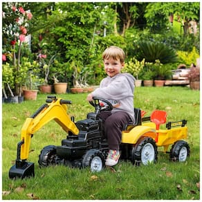 Projeto de trabalho realista: A escavadeira infantil é capaz de mover se para frente e para trás, com uma caçamba de escavação controlável e braços e articulações flexíveis que permitem às crianças operá la de maneira eficaz. Uma buzina e um volante adicionam à diversão. Reboque de Transporte Destacável: O carrinho de brinquedo é um recurso adicional neste passeio, permitindo que você escolha o que transportar durante uma viagem, tornando o zenamento mais conveniente. Construção robusta: Este veículo tem uma estrutura de metal sólida com seis rodas de plástico na parte inferior para garantir uma condução suave. Ideal para uso em gramados, áreas de lazer, quintais e calçadas. Sem necessidade de energia: O carro de construção infantil é movido por pedal, eliminando a necessidade de sistema de energia. Ele também possui uma buzina funcional para maior diversão.