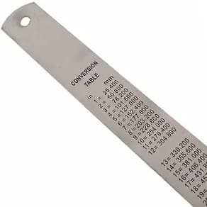 - Com tabelas de conversões milímetros/polegadas e tabela para diâmetros de brocas na face oposta.