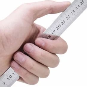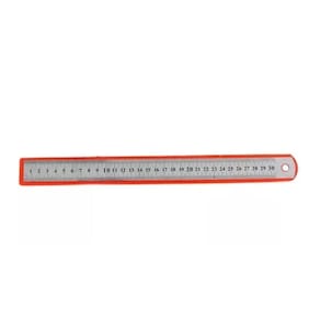 Escala em aço inox. Comprimento: 30 cm 12" . Largura: 27 mm. Espessura: 0,9 mm. Graduação em centímetros com precisão em milímetros. Graduação em polegadas, com precisão 1/32", 1/16", décimo e vigésimo de polegada. Um lado mede em centímetros e o outro em polegadas. Gravação em baixo relevo, não apaga nunca. Ean: 7899842213739