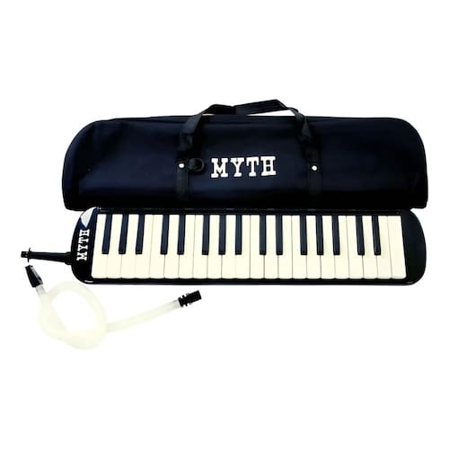 * A escaleta Myth de 32 teclas na cor preta é um instrumento versátil, portátil e fácil de tocar,
