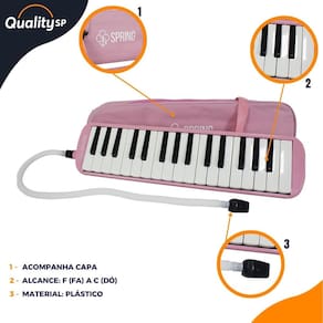 especificações Técnicas: • Marca: SPRING • Modelo: SG-32 • Número de Notas: 32 • Alcance: F (fa) a C (dó) • Material: Plástico resistente • Cor: Rosa • Cano de extensão • Bocal • Bag para transporte