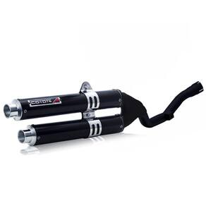 Escapes esportivos de alta performance, com design exclusivo COYOTE com duas saídas paralelas.Confeccionados em tubos de alumínio polido ou preto, fixados em curva do motor ( ou acoplamento em alguns casos ) feita em aço carbono preto.Substitui o escape. Proporciona à moto ronco inigualável, grosso e grave (estilo competição). Melhora o desempenho em médios e altos RPM's.