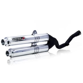Escapes esportivos de alta performance, com design exclusivo COYOTE com duas saídas paralelas.Confeccionados em tubos de alumínio polido ou preto, fixados em curva do motor ( ou acoplamento em alguns casos ) feita em aço carbono preto.Substitui o escape. Proporciona à moto ronco inigualável, grosso e grave (estilo competição). Melhora o desempenho em médios e altos RPM's.