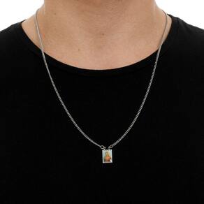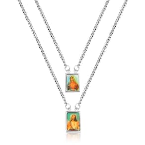 -01 Escapulário Aço Inox N. Senhora Do Carmo + Sagrado Coração