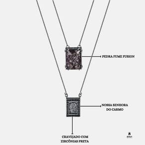 Escapulário Banhado a Ródio Negro Duplo Frontal Pingente Pedra Fume Fusion com 2 cm x 1,5 cm Corrente com 65 cm de comprimento