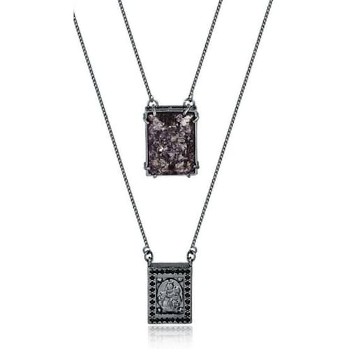 Escapulário Banhado a Ródio Negro Duplo Frontal Pingente Pedra Fume Fusion com 2 cm x 1,5 cm Corrente com 65 cm de comprimento