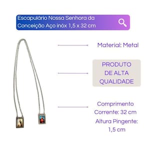 Escapulário Católico em Aço Inox Foto 32 cm - Escolha o seu Cor: Nossa Senhora Da Conceição Escapulário Católico em Aço Inox Foto 1,5 x 32 cm - Escolha o seu