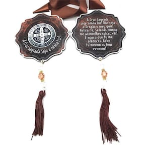 Escapulário de São BentoCetim / sem resinaConta cristal acrilico 12 e 14 mmAdorno tamanho: 12,5 x 27 cmComprimento: aprox. 1,5 m