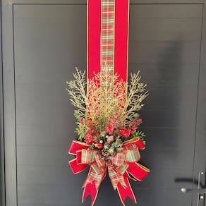 Receba o Natal com uma decoração que é pura tendência e sofisticação. O Escapulário Natalino vermelho é a peça perfeita para criar uma primeira impressão inesquecível, unindo a tradição do escapulário de porta com a modernidade e o luxo da cor Vermelho