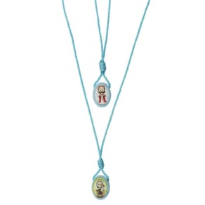 Escapulário infantil Nossa Senhora do Carmo Azul Este Escapulário Infantil traz em uma ponta a imagem infantilizada de Nossa Senhora do Carmo, e na outra o Coração de Jesus, e é acompanhado de um encarte com a oração. Feito em cordão na cor azul, madeira e adesivo colorido, medindo 32 cm de comprimento, o uso deste escapulário é uma forma de evangelizar as crianças e ensiná-las sobre a importância de se consagrar à proteção de Nossa Senhora e de se alimentar do amor temente a Deus.