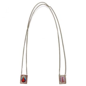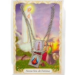 Escapulário Nossa Senhora de Fátima Aço Inox Foto 1,5 x 32cm O escapulário é um objeto símbolo da religião cristã católica, que consiste em duas imagens, uma do Sagrado Coração de Jesus Cristo e outro de São Sebastião, e possui o significado de proteção física e espiritual. Muito lindo e de ótima qualidade