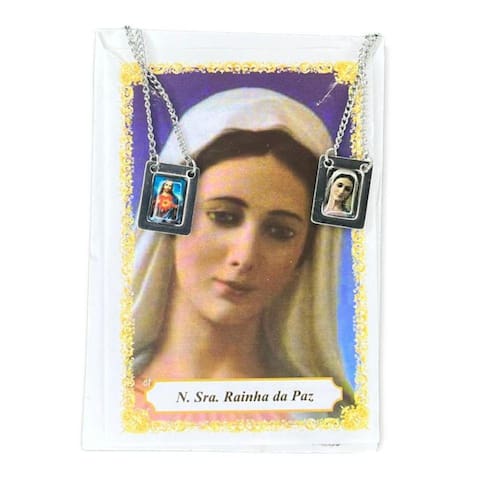 Escapulário Ns Sra Rainha da Paz Aço inox 1,5 x 32 cm