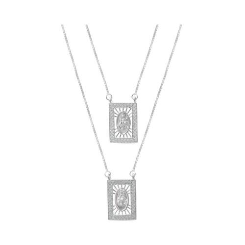Escapulário Prata 925 Sagrado Coração de Jesus e N. Sra. do Carmo com Zircônias
