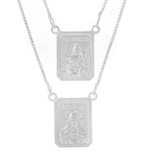 Escapulário Prata Grande N. Senhora do Carmo e Sagrado Coração Escapulário Prata Grande N. Senhora do Carmo e Sagrado Coração Plaquinhas: 11x15 mm Tamanho: 60 cm Peso: 5,7g Material: Prata 925