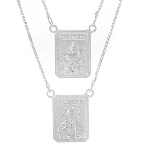 Escapulário Prata Grande N. Senhora do Carmo e Sagrado Coração Escapulário Prata Grande N. Senhora do Carmo e Sagrado Coração Plaquinhas: 11x15 mm Tamanho: 60 cm Peso: 5,7g Material: Prata 925