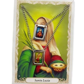 Escapulário Santa Luzia em Aço Inox Foto 1,5 x 32 cm O escapulário é um objeto símbolo da religião cristã católica, que consiste em duas imagens, uma do Sagrado Coração de Jesus Cristo e outro de Anjo da Guarda, e possui o significado de proteção física e espiritual. Muito lindo e de ótima qualidade