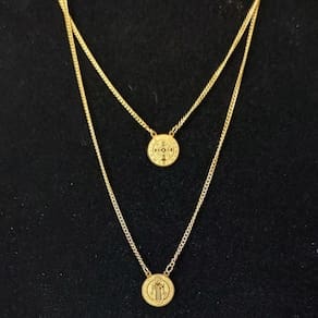 Escapulário aço dourado banhado a ouro 18k são bento amuleto