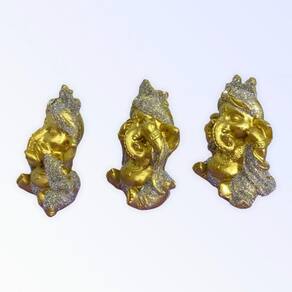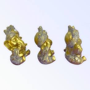 Escolha a Cor Trio Ganesha Cego Surdo Mudo 8 cm em Resina Cor: Dourado com Prata Escolha a Cor Trio Ganesha Cego Surdo Mudo 8 cm em Resinax000D x000d O Trio de Ganesha da Bialluz representa a tradicional fábula dos três macacos sábios: não vejo, não ouço e não falo. Com tanta tradição e sabedoria essas esculturas são ótimas pra emanar energias positivas para sua vida e o seu ambiente. Com uma pintura feita à mão que valoriza ainda mais a peça e realça as cores, nosso Trio de Ganesha com certeza será uma ótima aquisição na sua vidax000D x000d Escolha uma das cores disponíveis na opção COR do próprio anúncio.x000d x000d Enviamos a sua escultura em até 24 horas após a confirmação de pagamentox000D x000d Dimensões aproximadas:x000D Altura: 8 cmx000D Peso: 266 g x000D Material: Resinax000D x000d Por ser uma peça feita artesanalmente e pintada à mão podem ocorrer pequenas variações nas cores ou tamanhos.x000d x000d Caso tenha alguma dúvida nos mande mensagem que respondemos rapidinho para te ajudar da melhor forma possível Marca: Não Informado